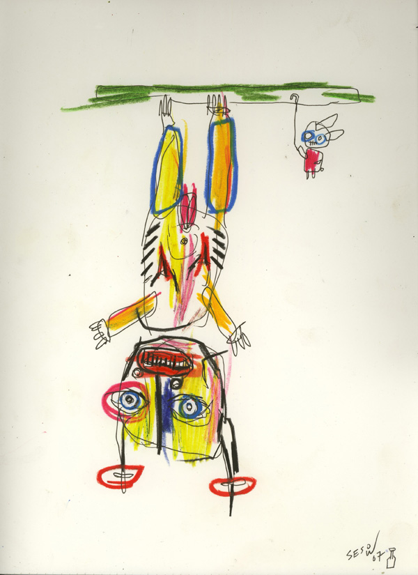 "Trying to train him", 9"x12" ink/watercolor/acrylic/mix on bristol paper