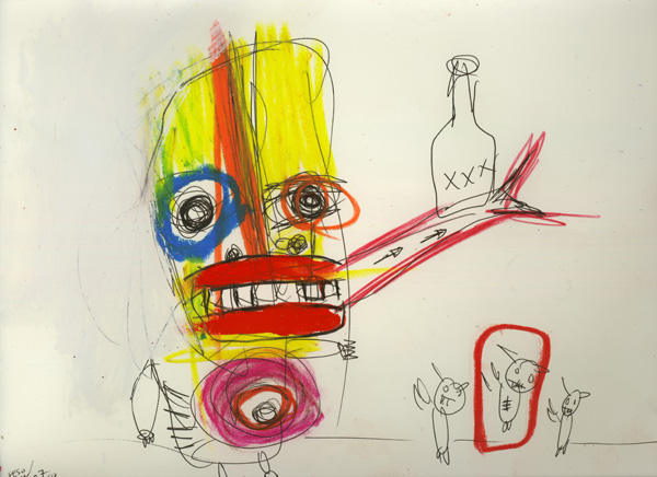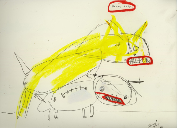 "Horny Dog", 9"x12" ink/watercolor/acrylic/mix on bristol paper