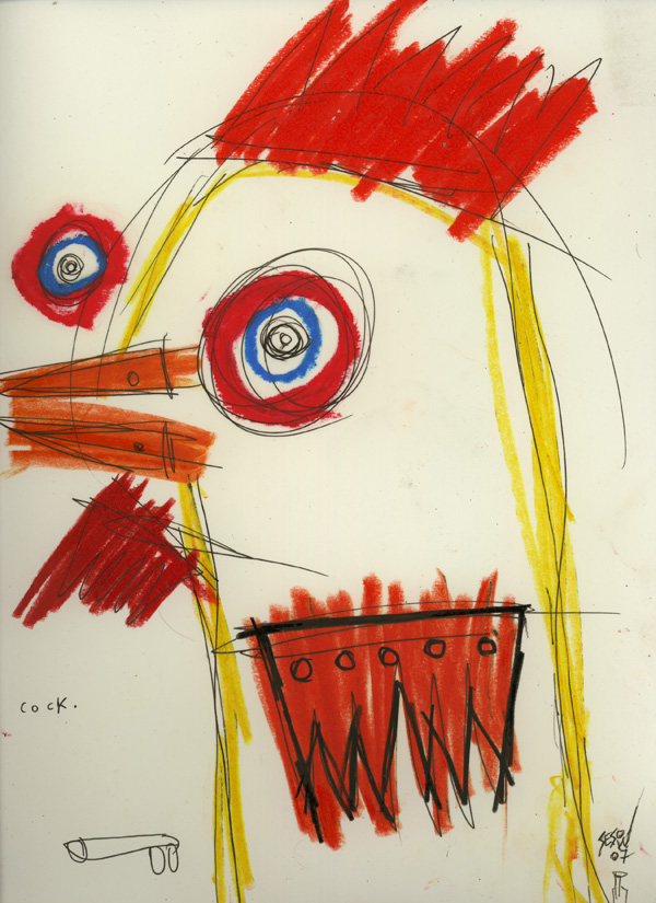 "Cock", 9"x12" ink/watercolor/acrylic/mix on bristol paper