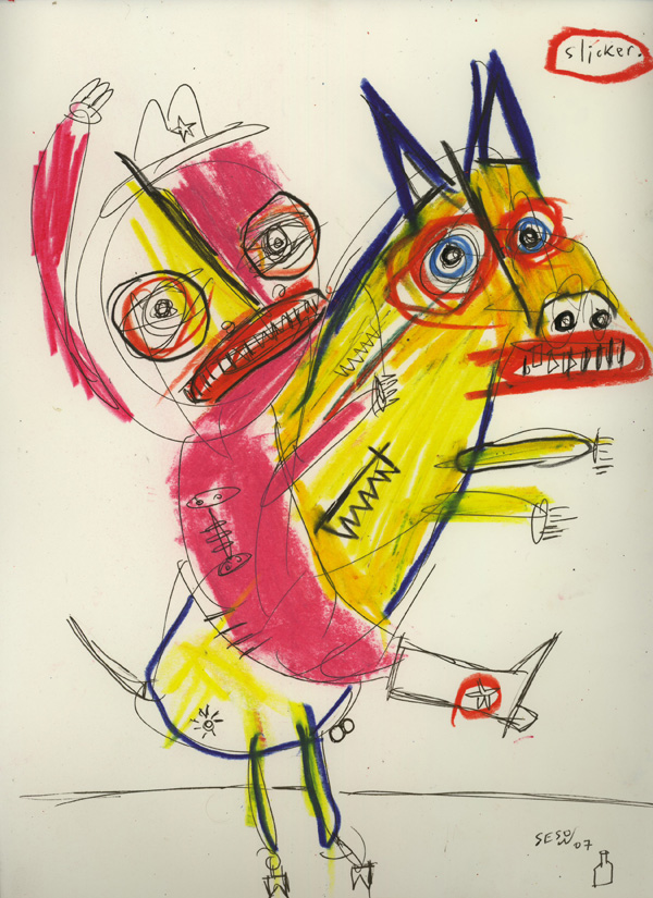 "Slicker", 9"x12" ink/watercolor/acrylic/mix on bristol paper