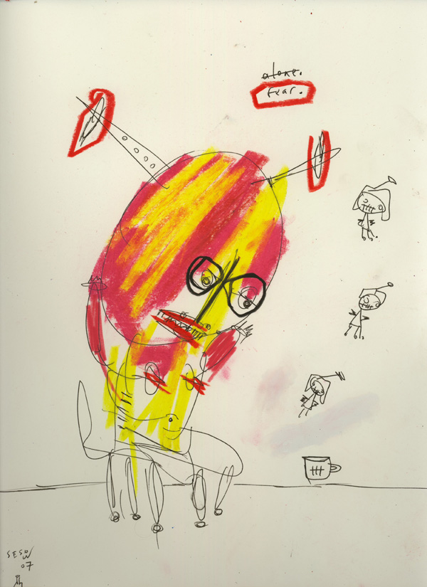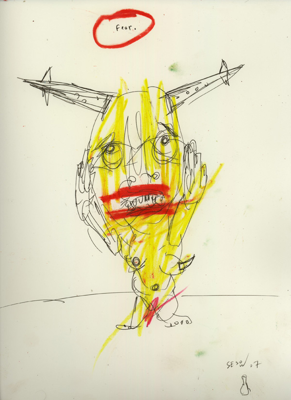 "Fear", 9"x12" ink/watercolor/acrylic/mix on bristol paper
