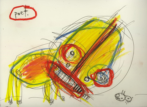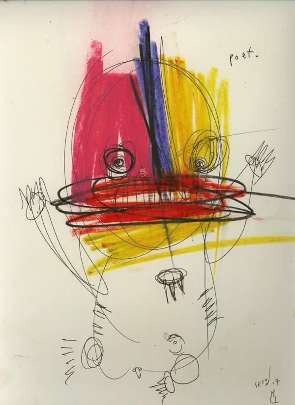 "Poet" #2, 9"x12" ink/watercolor/acrylic/mix on bristol paper
