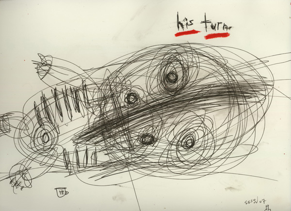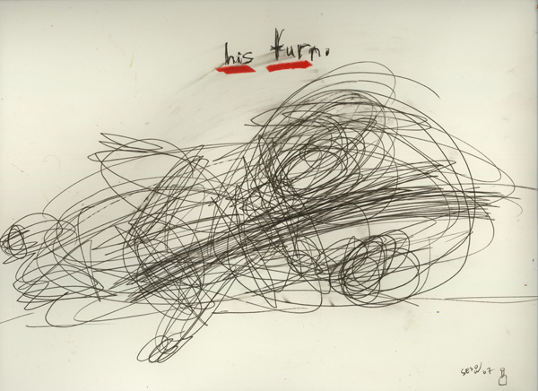 "His Turn", 9"x12" ink/watercolor/acrylic/mix on bristol paper
