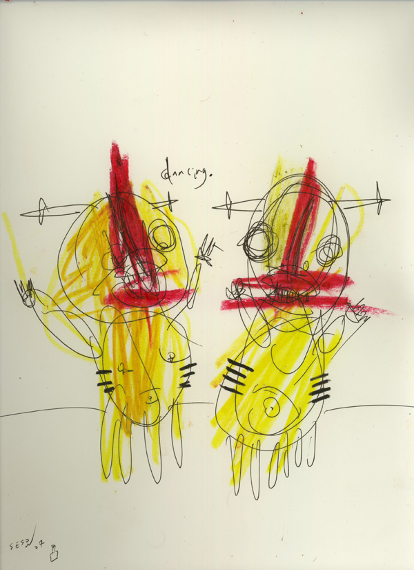 "Dancing", 9"x12" ink/watercolor/acrylic/mix on bristol paper