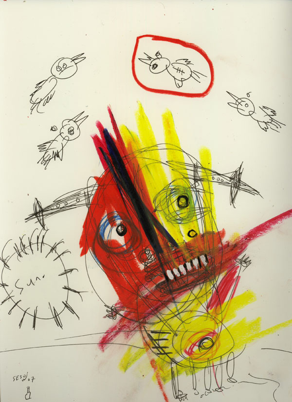 "Sun", 9"x12" ink/watercolor/acrylic/mix on bristol paper