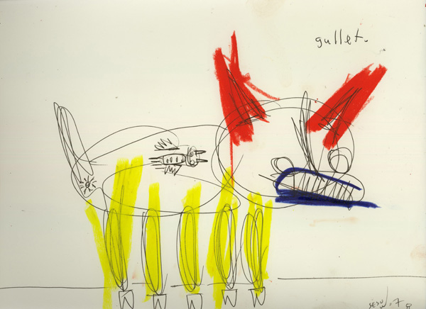 "Gullet" #2, 9"x12" ink/watercolor/acrylic/mix on bristol paper