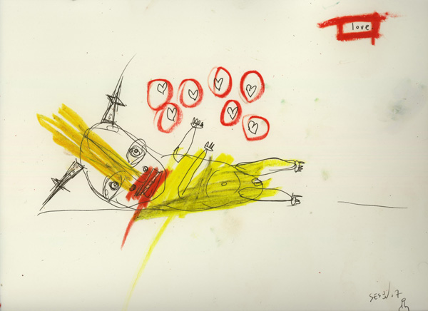 "love #2", 9"x12" ink/watercolor/acrylic/mix on bristol paper